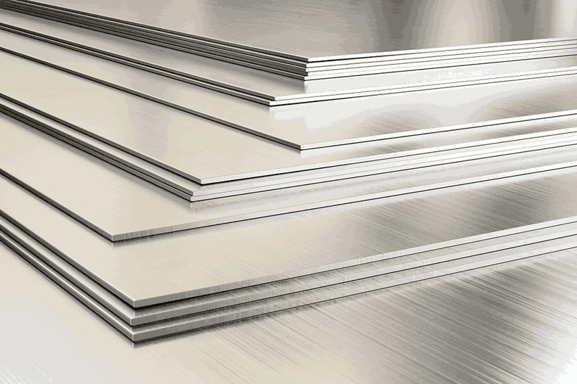 Mild Steel and Stainless Steel sheets used for fabrication and construction.